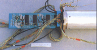 Micro-machined silicon pressure sensors bonded into a turbine blade.