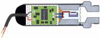 Low cost sensors are devices where the they are exposed to the media without protection.The glass feed-through and the silicon cell is mounted in a plastic housing with pressure ports for positive and negative pressure. (1st picture) The silicon sensor with the TAB print is fixed between two plastic mouldings with pressure ports. (2nd picture)