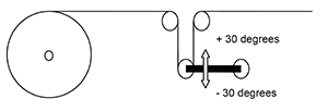 Accurate output of a dancer control is essential for controlling the web.A dancer is attached to a roller which is in constant contact with the material. The roller usually has a low tension cylinder or a pivot that allows the roller to move up and down typically +/ - 30 degrees to keep constant tension on the material without breaking it.
