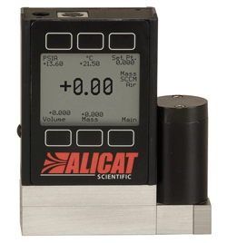 These MFC's offer the highest specification available together with the most features and benefits within the one instrument. Four measurement instruments in one - mass flow, volumetric flow, pressure and temperature - is complimented by the user selectable control mode function whereby with the push of a button the instrument can be set to control on either flow or pressure. The high specification continues with up to 130 gases pre-loaded, plus COMPOSERTM gas composition firmware for mixtures, all with no conversion factors; the accuracy statement remains true for each gas species or gas mix. The instruments offer bi-directional flow measurement and control on industry beating flow rates as low as 0.0025 mln/min all backed up by the Alicat Lifetime Warranty. An ideal product would be the Alicat MC Series Mass Flow Controller.