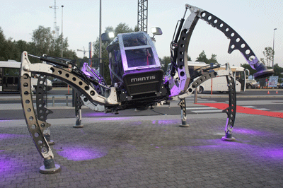 The successful launch at the Bestival IOW 2012 introduced us to the all-terrain Mantis - the world's largest hydraulic hexapod robot.