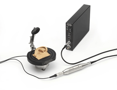 The GRAS UK 43BB has a very low noise floor below 10.5 dB (A) and has been developed to meet the consumer electronics industrys need for R&D testing of headphones, especially in-ear systems with Active Noise Cancellation. Because it is capable of measuring down to and below the threshold of human hearing, it can assess the influence of the electronics on the audio response of the earphones. The low inherent noise of the 43BB also means that correlation to subjective listening results is extremely good, and that THD and rub and buzz at very low levels can be investigated.