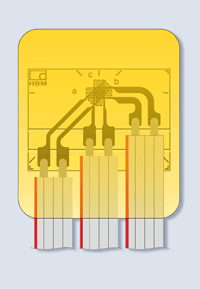 The V-series of strain gauge features four 3-meter long stranded connection wires to facilitate simple and rapid installation. The connection wires are designed to be especially suitable for connecting to HBM measuring amplifiers with their patented expanded Kreuzer circuit as this compensates for voltage losses due to long wires or temperature effects on the cable, enabling high-precision measurement.
