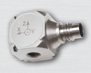 The ceramic PiezoBeam® and integral low noise charge amplifier providing a proportional high level voltage signal at an output impedance of less than 500 ohms. The sensing element design provides outstanding amplitude and phase response over a wide frequency range. The welded titanium housing, 10.5 mm cube for the single axis and 12.5 mm cube for the triaxial, has a single tapped mounting hole but may be mounted on any of the three faces. When ground isolated mounting is required a mounting clip or adhesive mounting adapter may be specified.