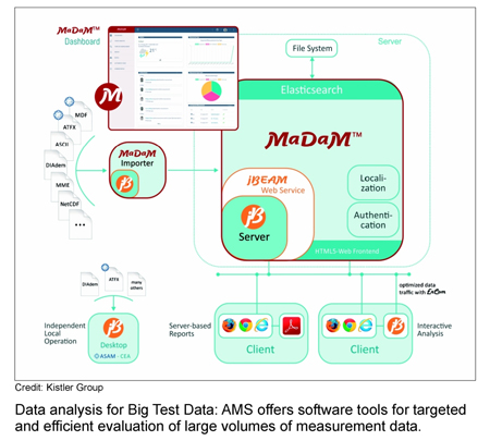 The AMS portfolio includes measurement data visualization and evaluation solutions that can be licensed for PC or web-based use: products that provide support with vehicle development for major OEMs and suppliers to the automotive sector - especially in Germany and China, two countries that are also cornerstones for Kistler. Dr. Bernhard Sünder, founder and CEO of AMS, comments: "Measurement data is different from other data. This is why we offer specialized data mining for Big Test Data with our jBEAM and MaDaM solutions. With Kistler as our strong partner, we are on course for growth. The global reach of the Group's sales organization will help us to advance."