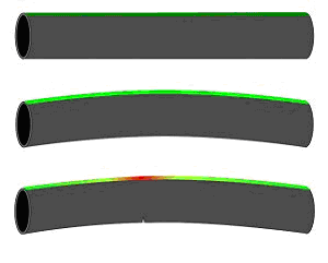 Below is a basic depiction of the types of measurements that can be performed. The coloured stripe on the top of the tube is an indicator of the strain level. Consider a round tube that has been instrumented with optical fiber on the top of the tube. When a load is applied to the centre of the tube with the ends fixed, the tube will deform (depending on the amount of load applied) and the strain will be measured by the optical fiber. In the unloaded state (top image), the strain is uniform and zero across the full length of the tube. When the load is applied in an upward direction in the centre of the tube, the tube will bend and the strain across the full length will again be uniform, but it will no longer be zero (middle image). However, a defect present in the tube will yield a strain measurement that is much higher around that defect (bottom image). This is an especially important measurement when the defect is so small that it cannot be seen by visual means or once mounted on the vehicle is hidden from view.Formula One like the automotive industry pushes the boundaries to optimise design and reduce weight. This results in new high-tech materials that promise improved performance as well as increased longevity. To understand these new materials and how they perform in their harsh operating conditions, it is necessary to match these advancements with the appropriate test technologies.
