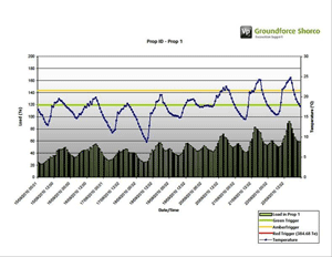 Data from the load pins within the struts can either be collected using a wireless hand held display onsite with range up to 200 metres or by using Mantracourt's GPRS sampling device; a unit that automatically gathers on-site data from sensors at pre-set intervals and transfers this via the GPRS network to emails, mobile phones or remote servers. This provides users world wide access to data recording and monitoring.