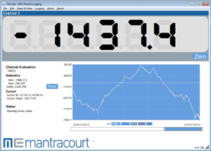 Displaying each value in a resizable window, channels can be setup with user-defined algorithms that can be used to calculate a multitude of maths functions. Visual displays and noise indicator alarm can indicate under and over range as well as loss in communications. T24LOG100 can log on demand, at pre-set intervals, on entering and leaving a pre-set overload and during an overload. Data is also generated in a CSV format, enabling external analysis. Future development of the T24LOG100 will include the ability to import a picture, drawing or schematic to display data readings graphically.