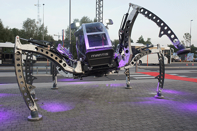 The Mantis is an all-terrain machine that stands 2.8 metres high, weighs nearly 2 tonnes and can be manually piloted or remote wifi controlled.