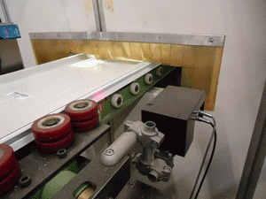 After curing, the shape and dimensional accuracy of the door panels - particularly around the key and slot joint areas - must be inspected in order to detect any deviations from the specification. Any decoration used on the door panels must also not affect the film. Depending on customer requirements, the door sections are then cut to the required shape using fly shears.