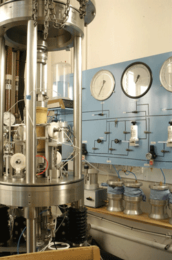 In order to take advantage of the sensors' high resolution over a complete test and up to large strains, the non-contact transducers have to be re-located during a complete test, so that the best accuracy for strains is maintained at each investigation point. "The rotational movement of the drive shaft, which passes through the bottom of the cell plate, is transformed by a system of bevel gears into horizontal, vertical or circumferential transducer displacements," explained Dr Erdin Ibraim.