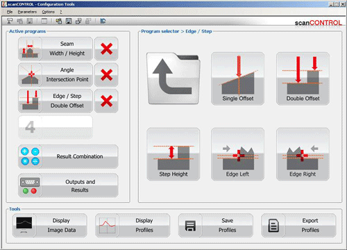 The scanCONTROL sensors of the SMART series provide users with all the functionality of the software, including data logging of live measurements and sensor output configurations. The controller stores all settings, allowing the sensors to function in standalone mode without using a PC. scanCONTROL sensors from the COMPACT and High-Speed series can also be operated using scanCONTROL Configuration Tools. Here, the software simulates the evaluation based on the live or offline profile of the connected sensor.