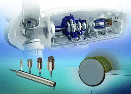 Above 100m, huge wind loads act on the rotor blades, housing and tower. Therefore, gearbox and generator have an elastic bearing. This is why couplings in wind turbines must balance the relative movement of the gearbox and generator. When measuring the offset of the coupling ring, non-contact eddy current displacement sensors can be used to determine the distance, while measuring onto the metallic coupling ring. This leads to the determination of the load profile. Monitoring the measured values is required in order to avoid unnecessary wear of couplings, bearings and shaft seals or, in extreme cases, serious damage to the wind turbine. Eddy current sensors allow measurements to be carried out in different directions - in the axial, radial and tangential axes. Some suppliers offer temperature-compensated versions that provide high measurement stability, even in strongly fluctuating ambient temperatures. The sensors are factory-calibrated for ferromagnetic and non-ferromagnetic materials, which eliminates the need for field calibration of the sensor. Compared to inductive switches and sensors, eddy current sensors provide a higher bandwidth and so are suitable for precise detection of high speed movements.Gap measurements in bearings
