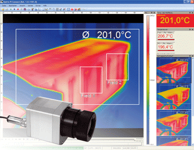 The camera package comprises the license-free optris PI Connect software. This software offers features for comprehensive analysis of thermal imagery, logging of data and integration with automated processes.