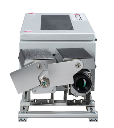 Below the glass i.e. on the side without the Low-E coating a CT G5L pyrometer reproducibly measures the exact glass temperature. The individual pixels of the IR camera image are referenced to this measured value. This enables automated emissivity correction for standard and Low-E glass. In addition to determining the temperature distribution, the system also calculates the glass surface area. Both the infrared camera and the pyrometer are equipped with a digitally controlled optics protection system. These shutters significantly increase the maintenance intervals for cleaning the optics and completely eliminate the need for additional and time-consuming blowing of the optics with compressed air.