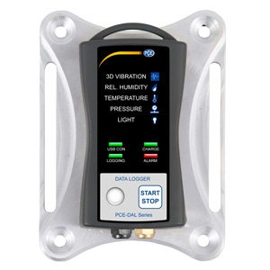 The PCE-DAL data loggers will be able to measure vibration of ±16 g, light of between 0.045 and 188,000 lux, barometric pressure of 10 to 2,000 mbar, temperatures between -30 and +70 °C (-40 to +158 °F) and relative humidity of 0 to 100 %. The sampling rate of the vibration sensor is max. 3200 Hz, all other sensors have a sampling rate of 1 Hz. The sampling rates of all different sensors can be adjusted by the user. The alarm function allows email or text messages to be sent.