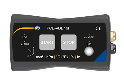 The brandnew datalogger PCE-VDL 16I of German origin measures temperature, air humidity, air pressure, light and acceleration in three axes.