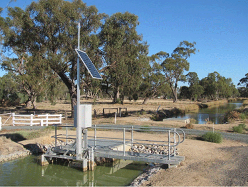 Automated irrigation channel control structure with remote power and communications.