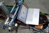 Hiberna use the AOSI EZ Compass 3A with separate roll and pitch sensors to determine the performance-critical correlation between deck tilt and steering bridge rotation using design concepts and a range of materials on a custom built evaluation rig. This can involve a very complex set of measurements as boards must have a varying sensitivity in different deck positions to suit the particular needs of slalom or speed iceboarding.