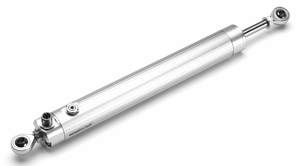 The all-metal design includes a sturdy anodised aluminium housing with a stainless steel actuator rod supported in twin bearings with a backlash-free pivot head mounting on rod and body ends that allows up to +/- 12.5º free movement. The fully sealed unit is rated for 50 million movements and will suit operation in extreme environments including high pressure washdown, water, oil and other contaminants