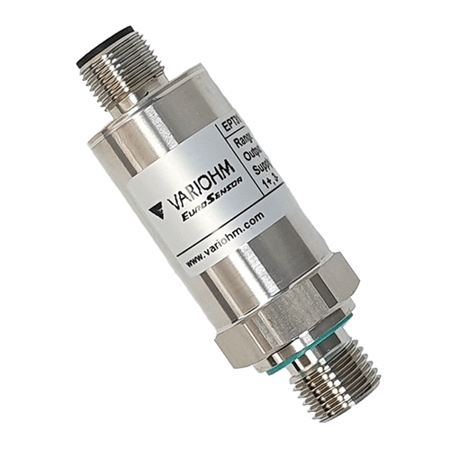 Tested to EN rail industry standards for EMC, vibration, shock, and corrosion resistance the new EPT3100R is available with IP66 or optionally IP69K protection. Twenty gauge-pressure range options from 0.6 bar to 2000 bar are offered with a +/- 0.5% full scale accuracy @ RT including nonlinearity, hysteresis, repeatability, calibration, and offset factors. With a 4 20 mA output from a 14.4 to 33.6 V supply, a wide choice of pressure ports in 17-4 PH stainless steel and a durable 22 mm diameter 304 stainless steel housing, the sensor provides durability, high strength, and excellent corrosion resistance at temperatures up to 105°C.The new EPT3100R is a development of Variohms well-established EPT pressure sensor series that has gained a high reputation over several years of production for demanding pressure measurement applications for gases and liquids compatible with stainless steel - in industries as diverse as autosports, process engineering, medical equipment, and agricultural machinery. These piezo resistive sensing element-based sensors employ the latest ASIC circuit technology to ensure excellent accuracy, a wide flexibility in the choice of electrical output and pressure port selection, and high measurement precision, linearity, and repeatability.
