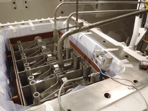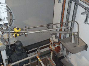The extensions to the VEGAPULS waveguide and antenna, as well as the VEGASWING tuning fork also has bends to enable them to reach as well as accommodate manoeuvring inside the filling area to carry out their tasks. Both devices were specially designed and fabricated for the application, they are mounted on a pivoting rig, which can be swung over prior to filling for level monitoring and swung back when the flask is lifted in and out.