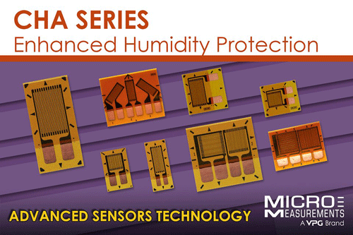 The new CHA Series humidity resistant strain gages are the latest addition to the companys CEA Series strain gages, which are among the most popular of Micro-Measurementss offering of strain gages. The CHA Series offers better humidity performance compared with the CEA family, making it the ideal choice for the most demanding applications such as humidity conditioned composite materials. Built to improve perfromance under ASTM-5229 Standard Test Method Absorption Properties and Equilibrium Conditioning of Polymer Matrix Composite Materials test condisions, the CHA Series strain gages are currently available in several uniaxial, tee rosette, and rectangular rosette configurations.