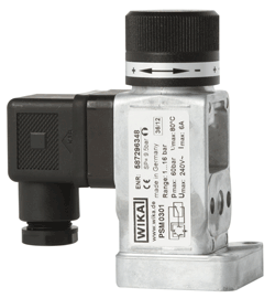 Just like in the models PSM01 and 02, the core of the instrument is a flicker-free snap-action switch. It allows for high precision with a reproducibility of ±2 % of the full scale value in the measuring ranges 0.2 ... 2 bar to 40 ... 400 bar. WIKA delivers the three universally usable OEM pressure switches with a factory-set switch point on request.