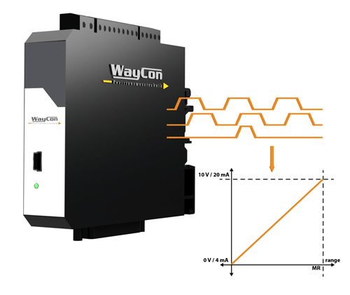 With the IMX, WayCon Positionsmesstechnik offers a device that quickly converts input signals (position, frequency, SSI and speed) into absolute analog values. The analog variables of current and voltage can be scaled from 0/4 ... 20 mA and -10...+10 V respectively as desired.