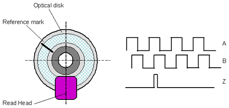 Fig. 1 - Schematic of an incremental optical sensor with a reference pulse.