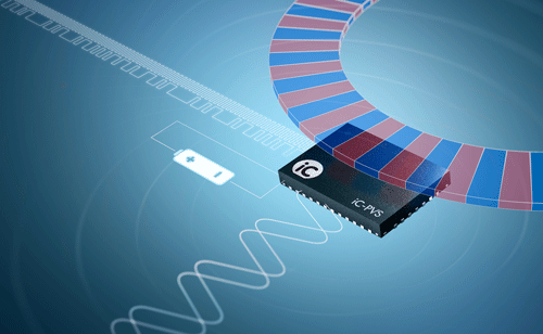 iC-Haus presents a new kind of Hall sensor IC at this year's SPS - smart production solutions (Hall 4A, booth 136): The iC-PVS combines a flexibly configurable Hall array front-end with a 56-bit low-power period counter and an integrated 6-bit interpolator.Battery-buffered, it can be used to implement multiturn absolute encoders that operate with conventional incremental scales or gear wheels. Due to the high mounting tolerances compared to classic absolute systems and freely scalable scanning diameters, the iC-PVS is an attractive alternative as a stand-alone solution for encoder systems with low to medium resolutions. Ultra-low power technology (2 to 30 µA) and an integrated battery monitor enable service-free operation for a minimum of 10 years.