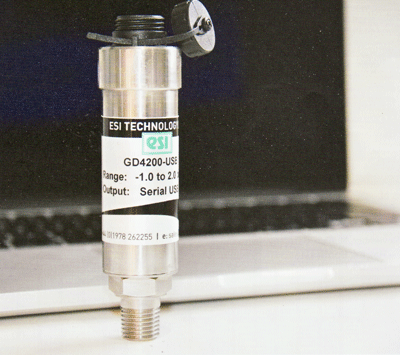 The Genspec Dynamic USB Transducer, or the GD4200, is a digital pressure measurement system from ESI Technology, comprising of a pressure transducer and software, which can be up and running very quickly without the need for wiring, separate power supplies or signal conditioning instrumentation. Live pressure measurement readouts are displayed on the screen of your laptop or PC. Up to 16 pressure inputs can be connected and monitored at the same time. Whether you are looking to perform test and calibration, spot checks or local, direct monitoring, the GD4200USB is the convenient solution.